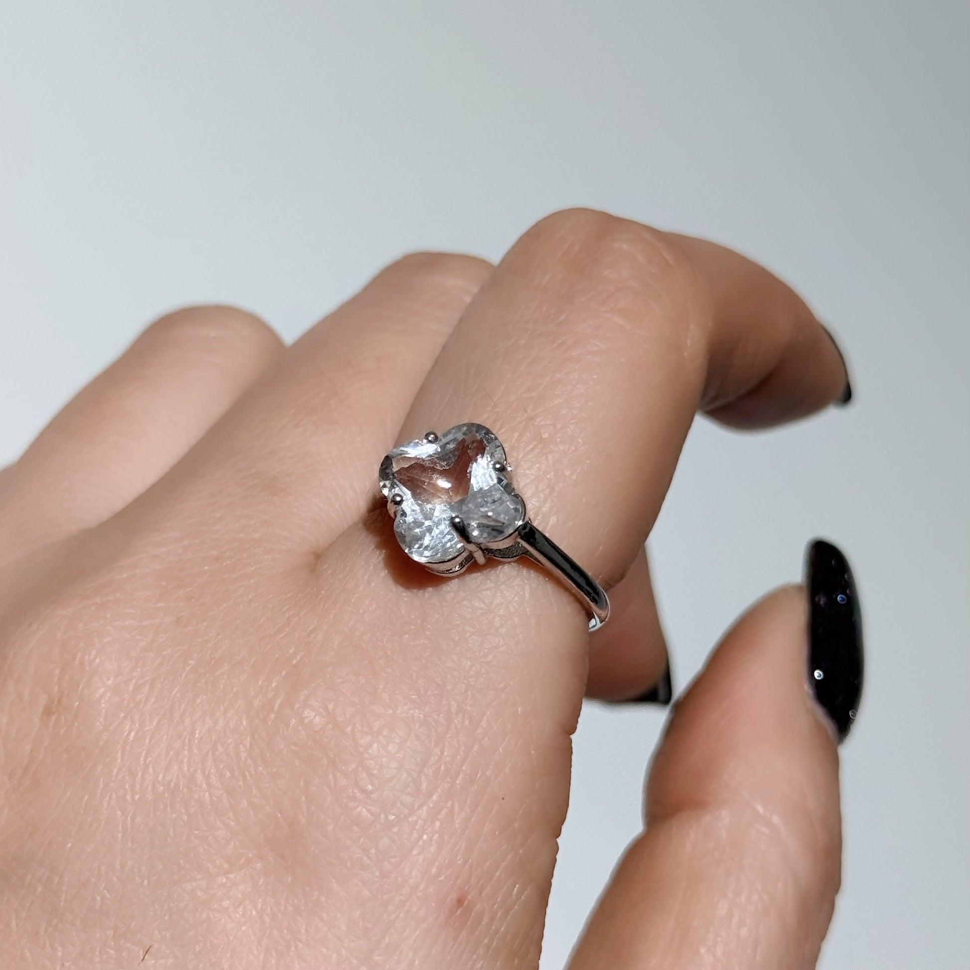 白水晶四葉草四爪戒指